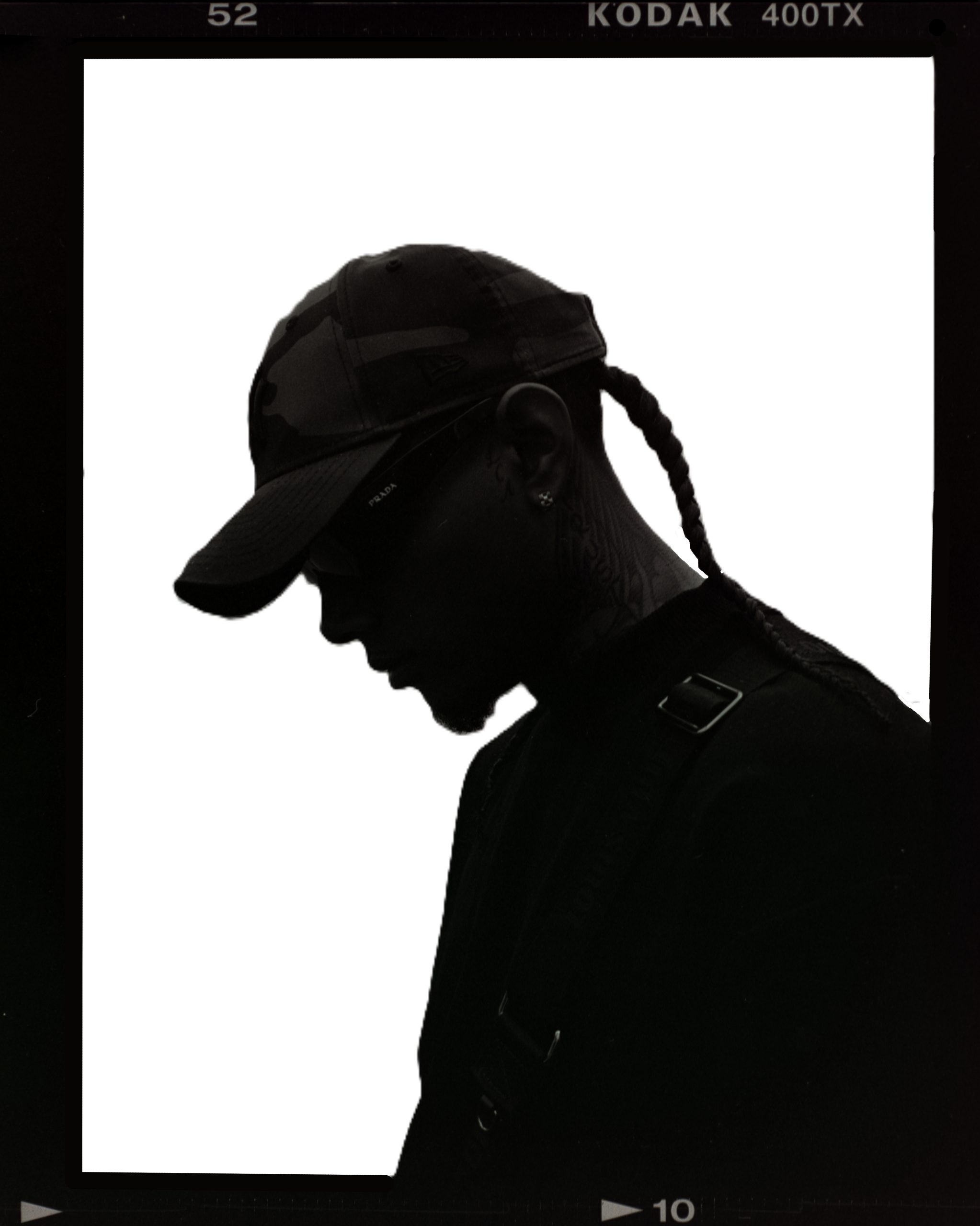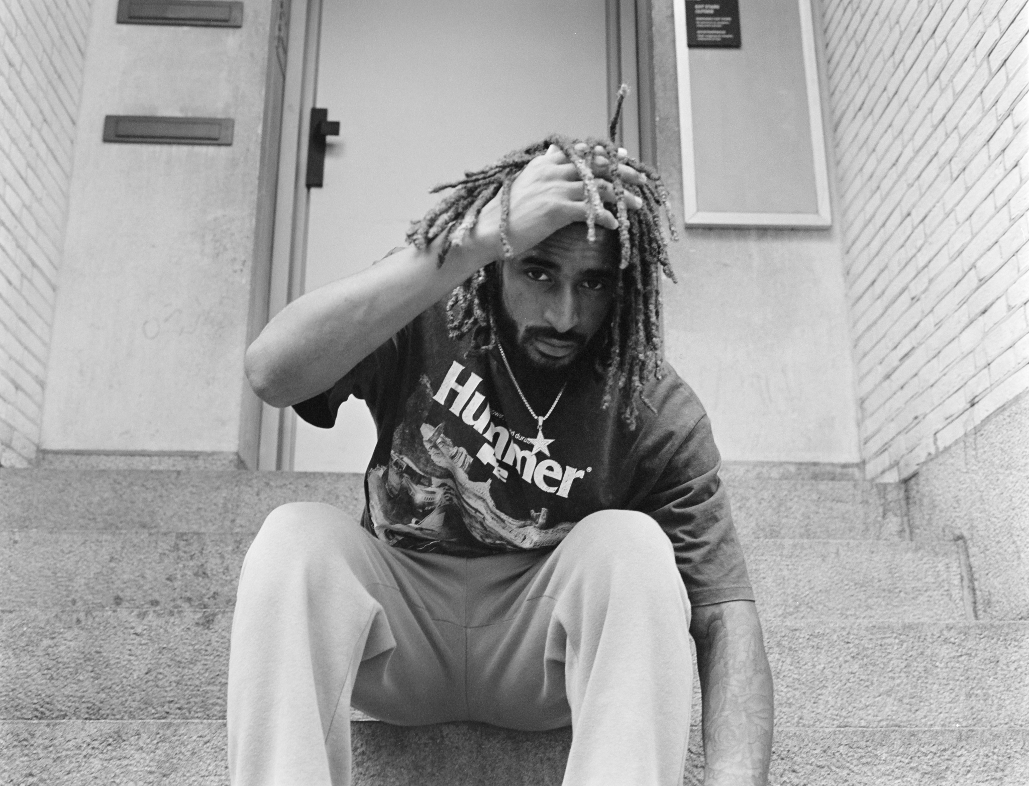 Famous rapper called: Kelgium, shot on b&w 6x9 film using a fujica 690, Large negative was scanned 12 times to produce a high quality image.