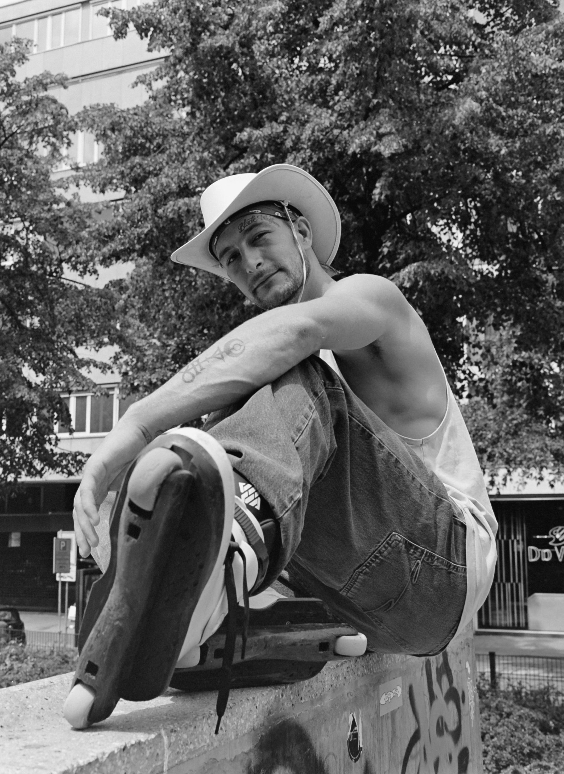 Portrait of Marcel aka bladetrasher on black and white film shot on fuji ga645.