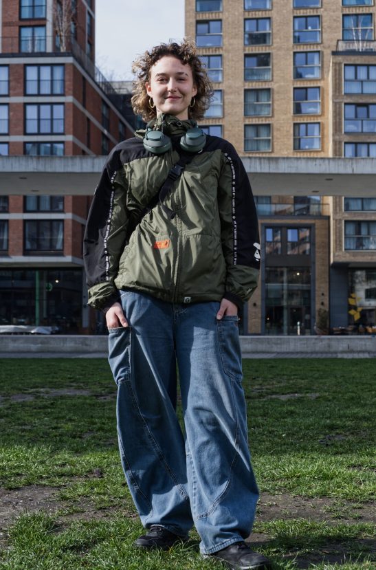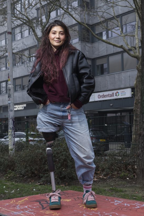 Here you see a portrait taken with a Fuji GFX50s 63mm off camera flash in front of Blakeburg Rotterdam model instagram @ch3dli_